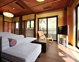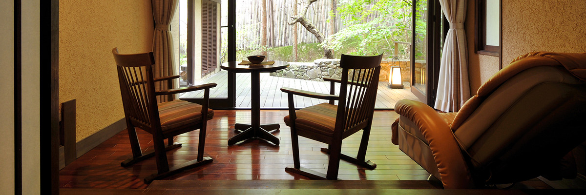 全ての部屋に専用の天然温泉露天風呂を備え、空間の余裕を大切に...