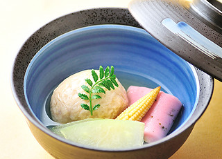 「尚文」の食事は、奥利根の山や利根川で採れる食材、そして近隣の田畑で育まれた旬の作物をふんだんに使う「山人(やまびと)料理」です。郷土料理の伝統を踏まえつつ枠にとらわれないこの料理の味わいは、素材そのものが持つ力を生かすことが基本です。野菜は色や形をなるべく残しながら、旨味を引き出す味の足し引きにこだわります。魚は塩を振り炭火で最高の火加減で焼き上げ、肉はそのまま焼くのはもちろん肉質に応じた熟成や加工にも徹底的にこだわっております。旅館らしい懐石料理ではありませんが、山の食材に通じた料理長兼猟師「阿部達也」を中心に、全ての調理スタッフが心を込めてお作りいたします。「みなかみ」ならではの逞しい大地の恵みをたくさんお召し上がりください。