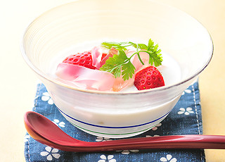 田舎の一日は美味しい朝ご飯で始まります。地元の精肉店「育風堂」のソーセージに「さくらたまご」の温泉卵、季節の野菜で作る「田舎煮物」に、地元豆腐店の豆乳を使う「生搾り豆乳の茶碗蒸し」。そして20年以上も作り続けている「手づくり胡麻豆腐」などボリュームもたっぷり。自家製味噌を使った熱々のお味噌汁、夕食とは違う米で炊き上げるご飯もどんどんおかわりしてください。