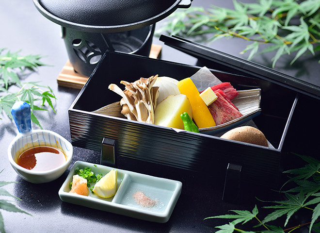 - 自家製ハムと厚揚げ、極厚しいたけに季節野菜。スタンダード献立「山人料理」に、厳選の地元食材を炭火で香ばしく焼き上げる「囲炉裏料理」をプラスしたプランです。その日その時の“尚文おすすめの逸品”もご用意させていただきます。