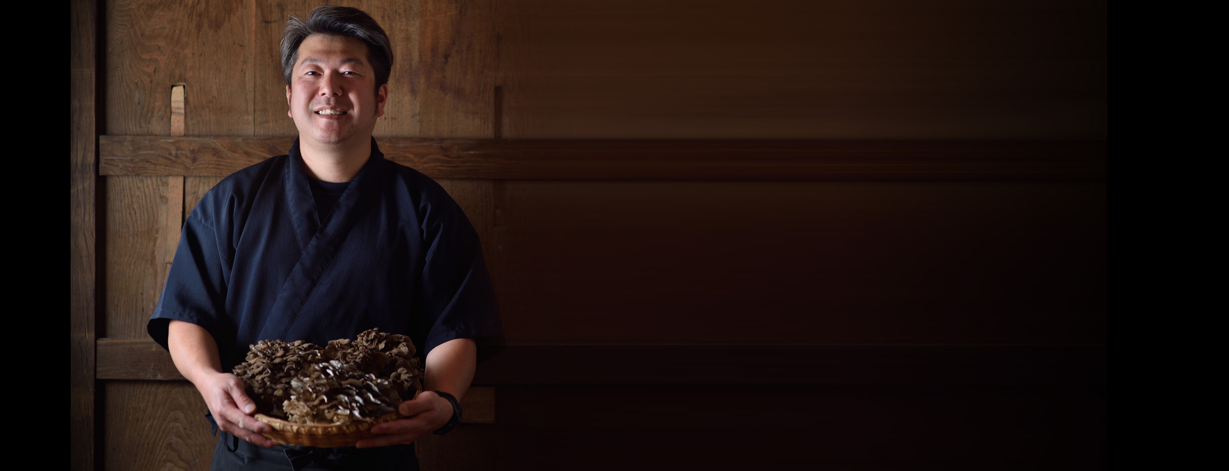 「尚文」の食事は、奥利根の山や利根川で採れる食材、そして近隣の田畑で育まれた旬の作物をふんだんに使う「山人(やまびと)料理」です。郷土料理の伝統を踏まえつつ枠にとらわれないこの料理の味わいは、素材そのものが持つ力を生かすことが基本です。野菜は色や形をなるべく残しながら、旨味を引き出す味の足し引きにこだわります。魚は塩を振り炭火で最高の火加減で焼き上げ、肉はそのまま焼くのはもちろん肉質に応じた熟成や加工にも徹底的にこだわっております。旅館らしい懐石料理ではありませんが、山の食材に通じた料理長兼猟師「阿部達也」を中心に、全ての調理スタッフが心を込めてお作りいたします。「みなかみ」ならではの逞しい大地の恵みをたくさんお召し上がりください。